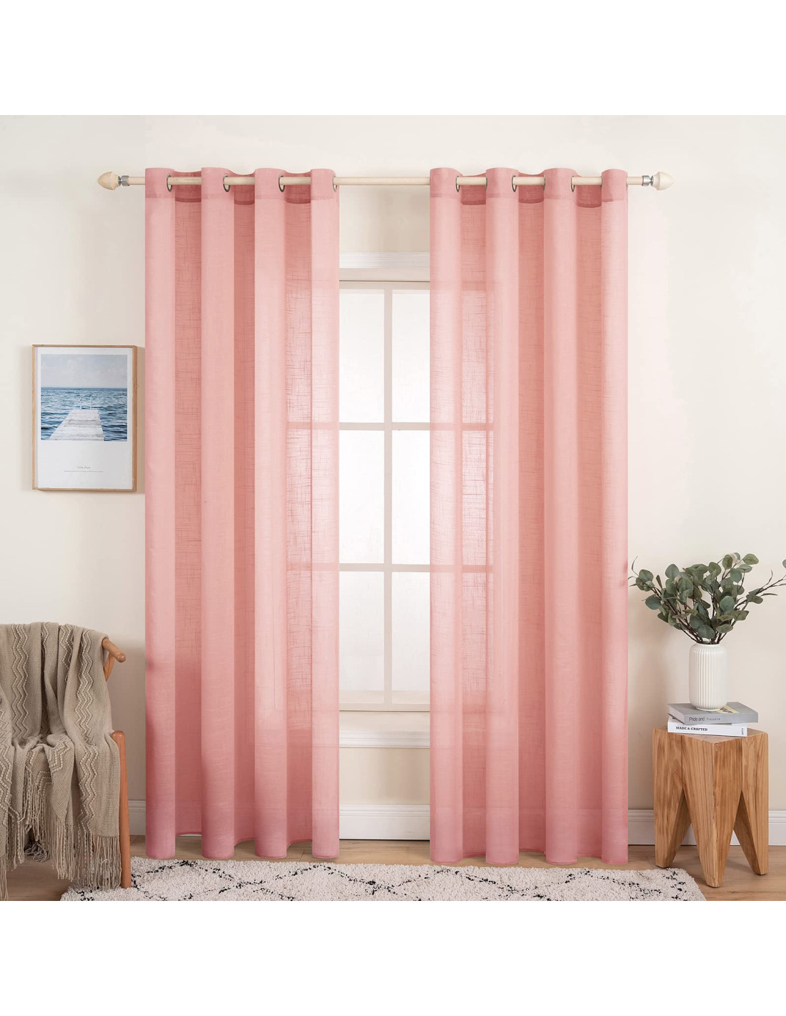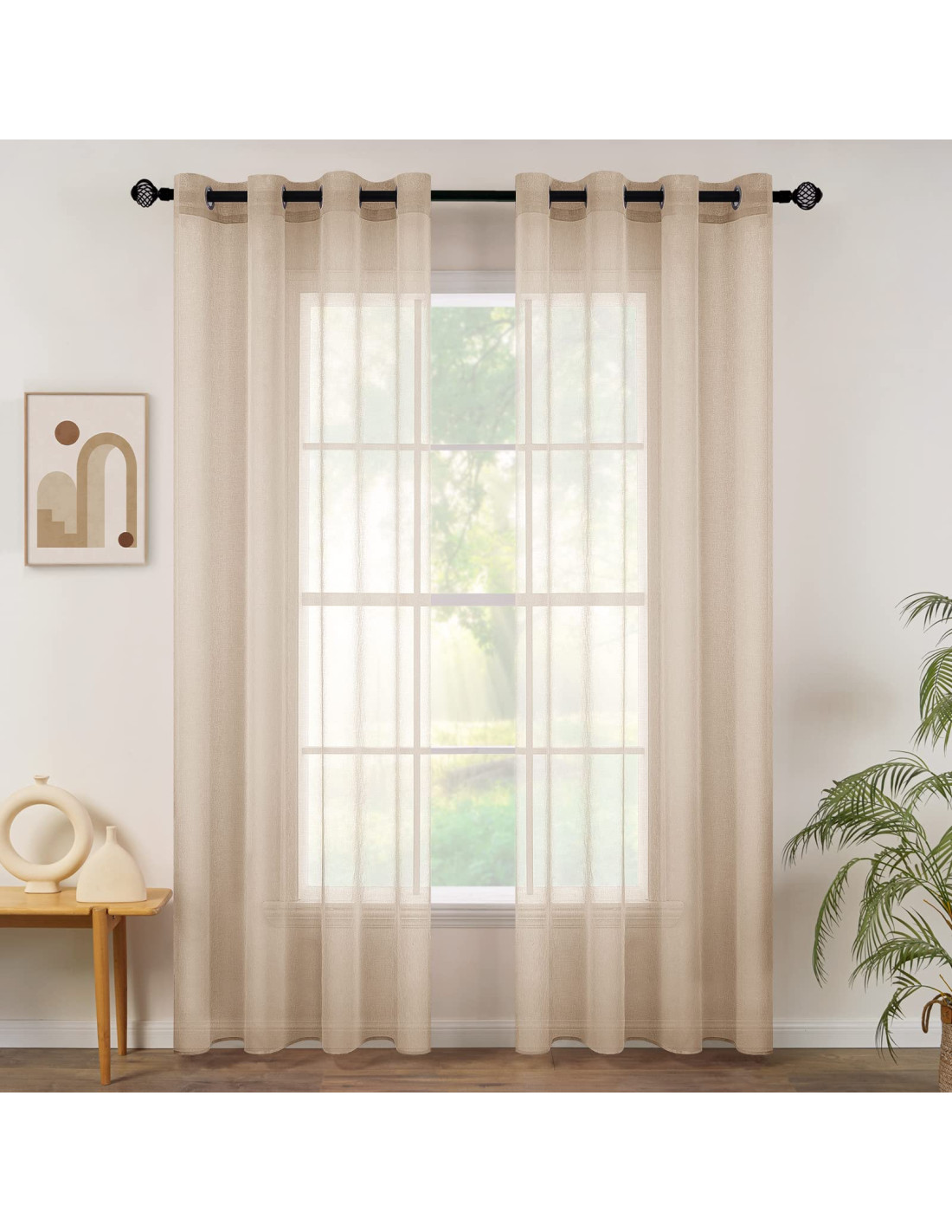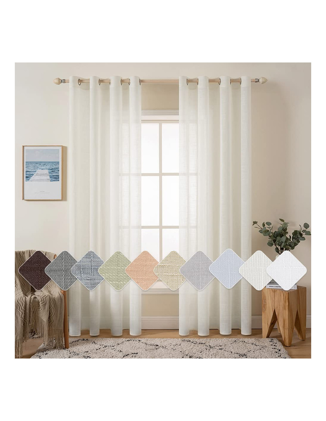 MIULEE Set de 2 Perdele din in transparent cu ochi Dormitor 140 x 225 cm L x H Alb fildeș - 1 set