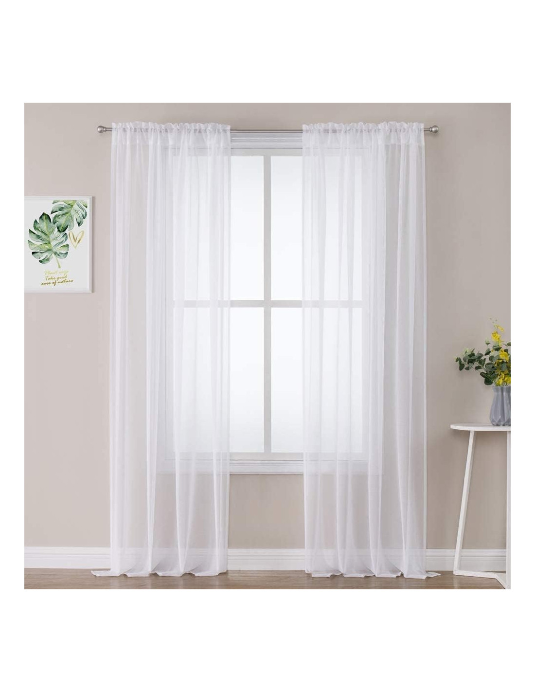 MIULEE Set 2 Perdele Transparente Poliester Sufragerie Transparenta pentru Dormitor 140 x 260 cm W x H , Grommet Top Alb - 8 seturi