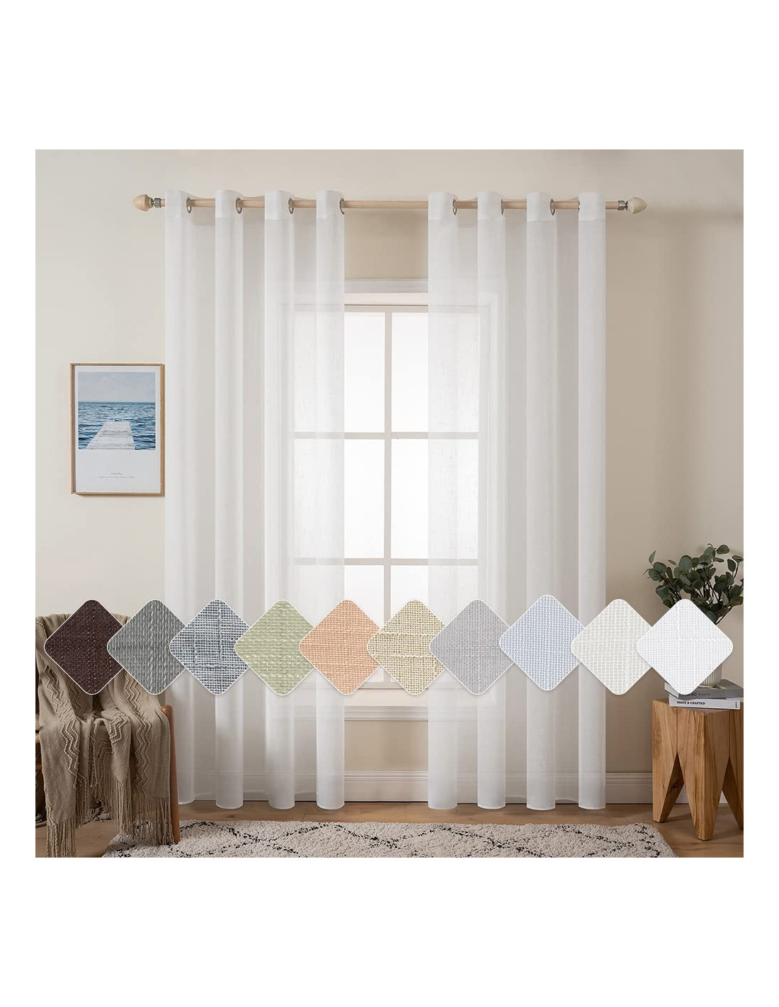 MIULEE Set de 2 Perdele din in transparent cu ochi Perdele cu aspect de in transparent Dormitor 140 x 175 cm L x H Alb - 1 set