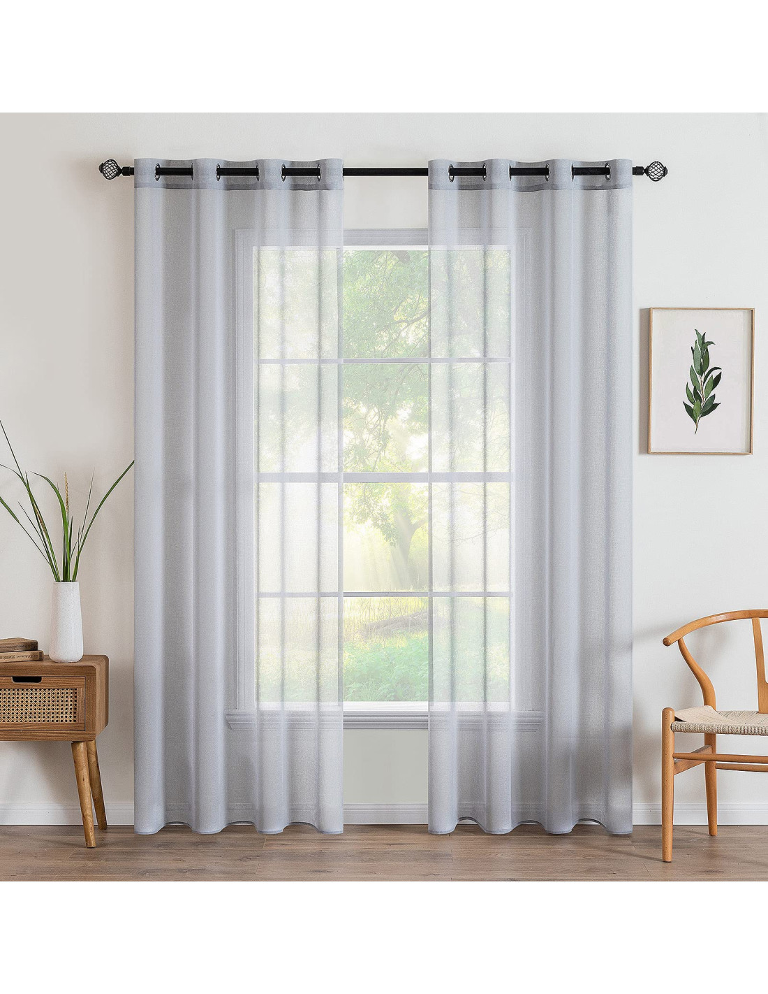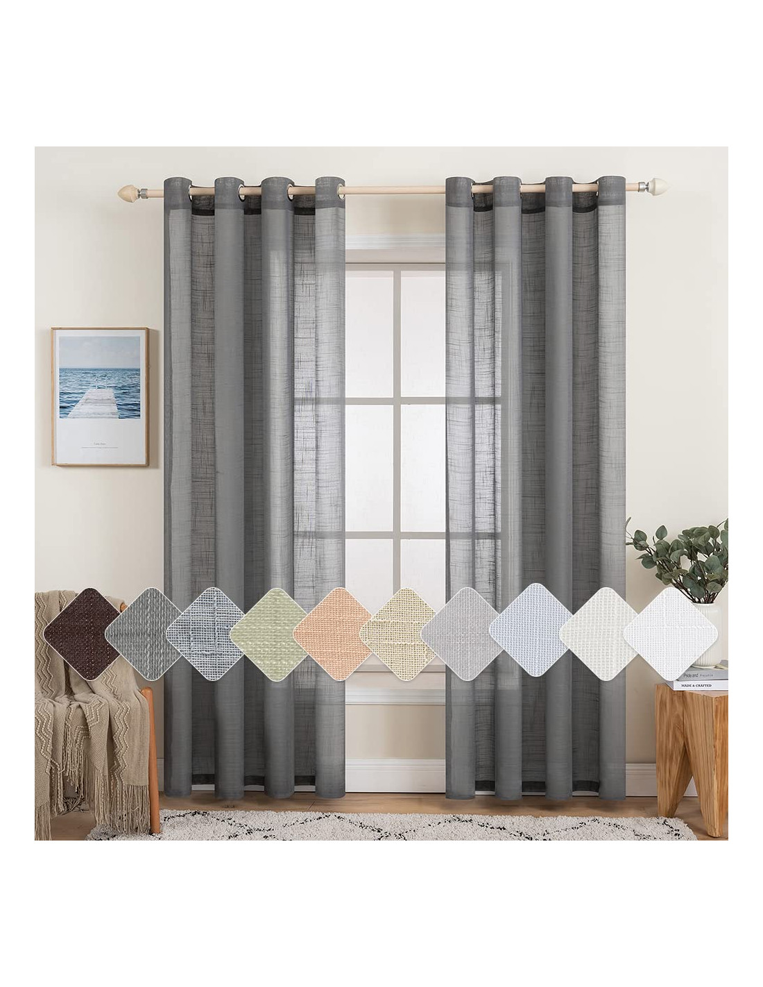MIULEE Set de 2 Perdele din in transparent cu ochi Dormitor 140 x 225 cm L x H Gri închis - 7 seturi