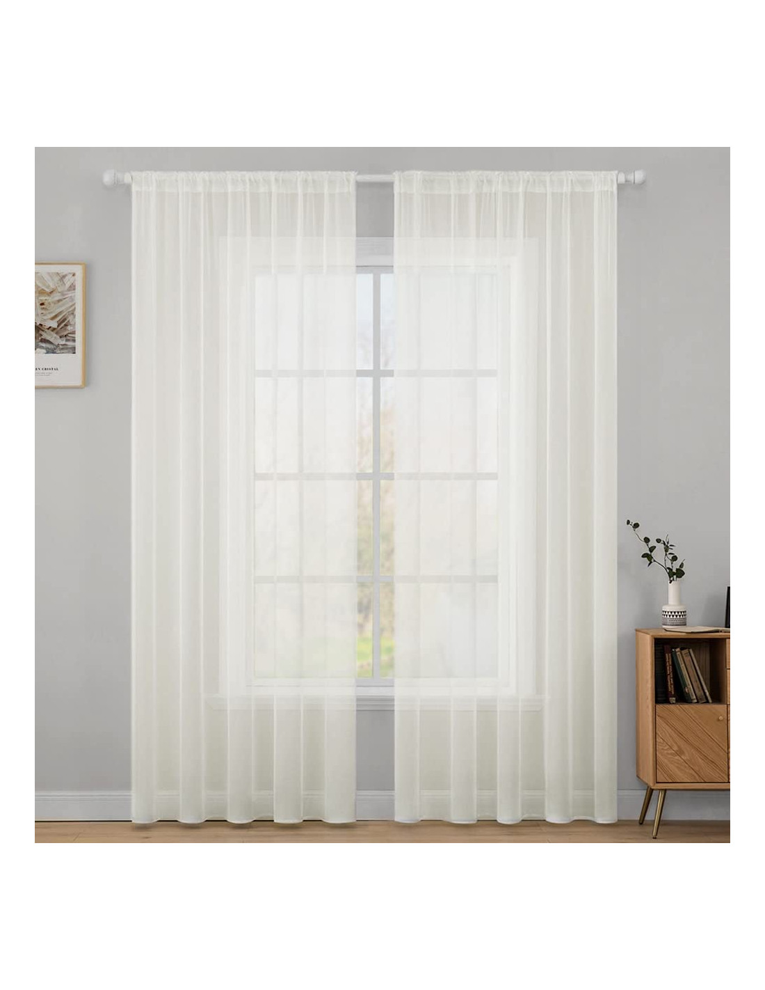 Set de 2 Perdele Decoratiuni de Craciun Sufragerie Perdele Decorative Aerisite pentru Dormitor Fildeș 55 Wx96 L, Buzunar pentru Tijă 4 seturi