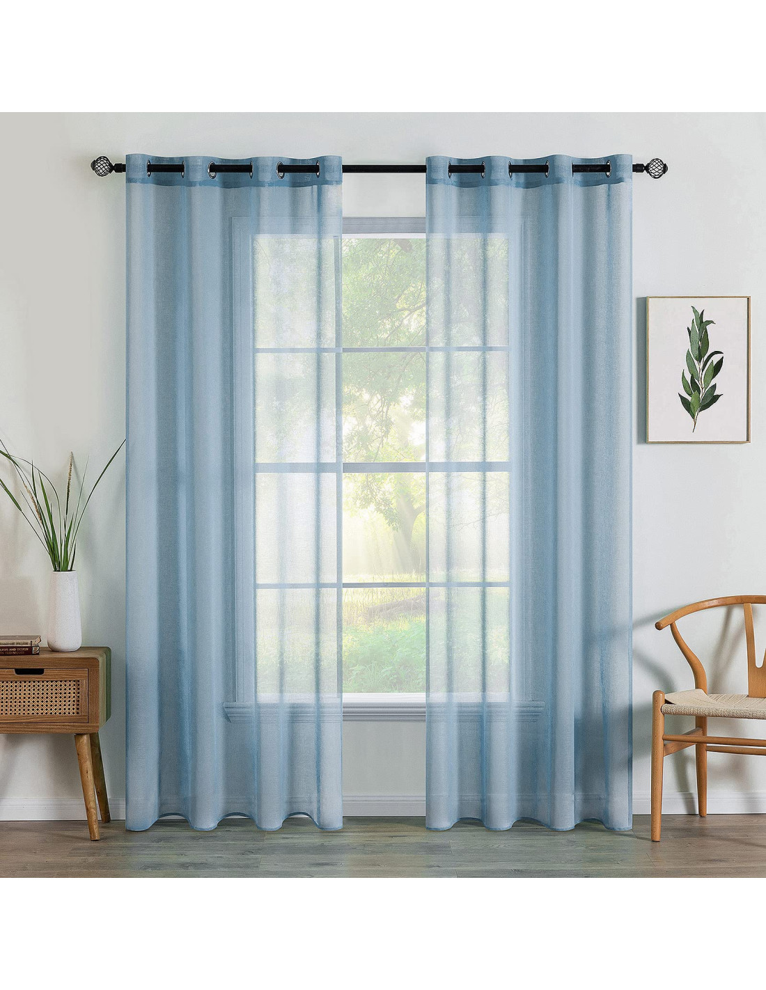 Set de 2 Perdele Voal Transparent din Poliester Sufragerie Dormitor 140 x 225 cm W x H , Grommet Top Dusty Blue 2 seturi