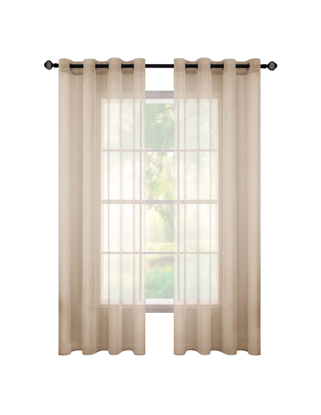 Set 2 Perdele Voile Transparente cu Ochiuri Aerisit Decorativ Dormitor Sufragerie 140 x 245 cm W x H Set de 2 Kaki 10 seturi