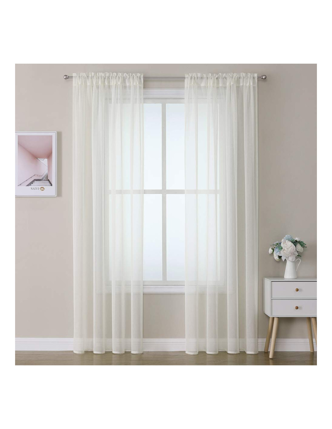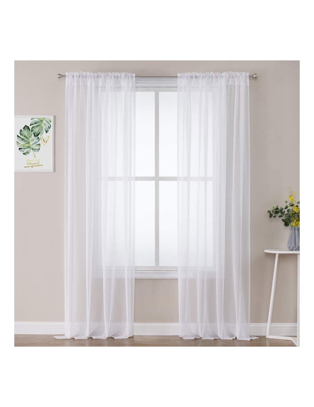MIULEE Tijă de perdea din voal transparent Perdele transparente din voal Perdele pentru fereastră Transparente Sufragerie Esarfe Dormitor Cameră pentru bebeluși Set de 2 140 x 145 cm L x H, Buzunar pentru Tijă Alb 1 set