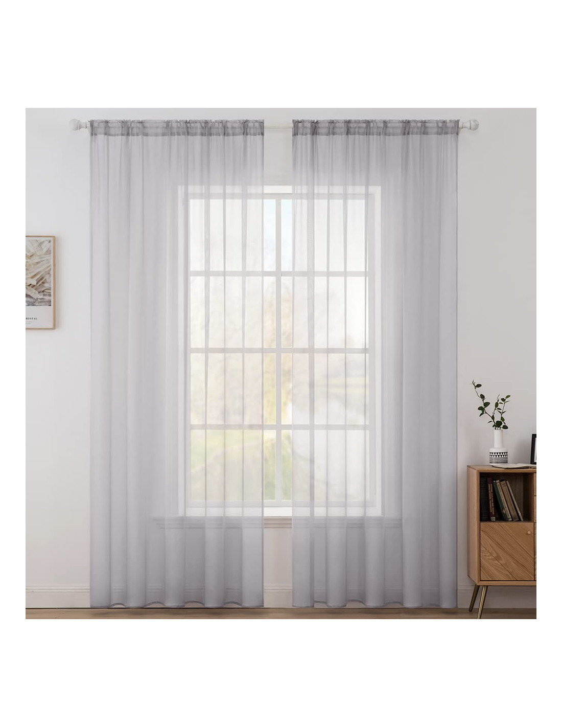 MIULEE Set de 2 Perdele Voile, Perdele Transparente Din Voile Poliester Tijă Tragere Transparentă Sufragerie Perdele Decorativă Aerisit pentru Dormitor Gri deschis 55 Wx96 L, Buzunar pentru Tijă - 5 seturi