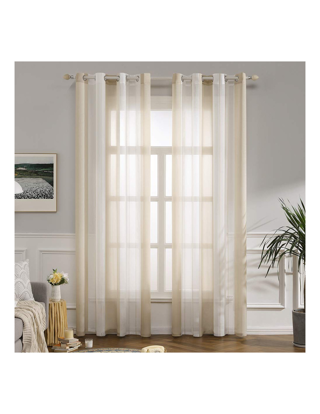 MIULEE Perdele cu dungi Transparente cu Ochiuri, Perdele Voile Sufragerie Set de 2, Perdele Dormitor Transparenta cu Motiv in dungi albe Bej, Perdele scurta Dungi semitransparente 140 x 145 cm 2 seturi