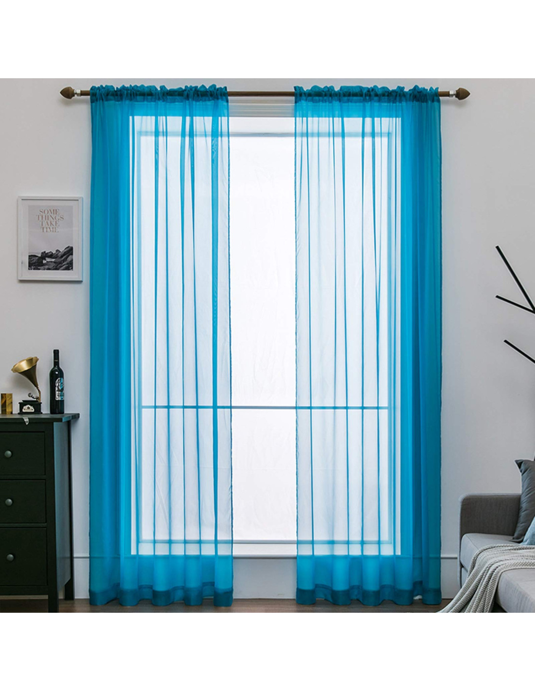 MIULEE perdea Voile, perdea transparenta din voil, tragere cu tija uni, living transparent, perdea decorativa aerisita pentru dormitor, set de 2, 175 x 140 cm H x L , buzunar tij albastru deschis 1 set
